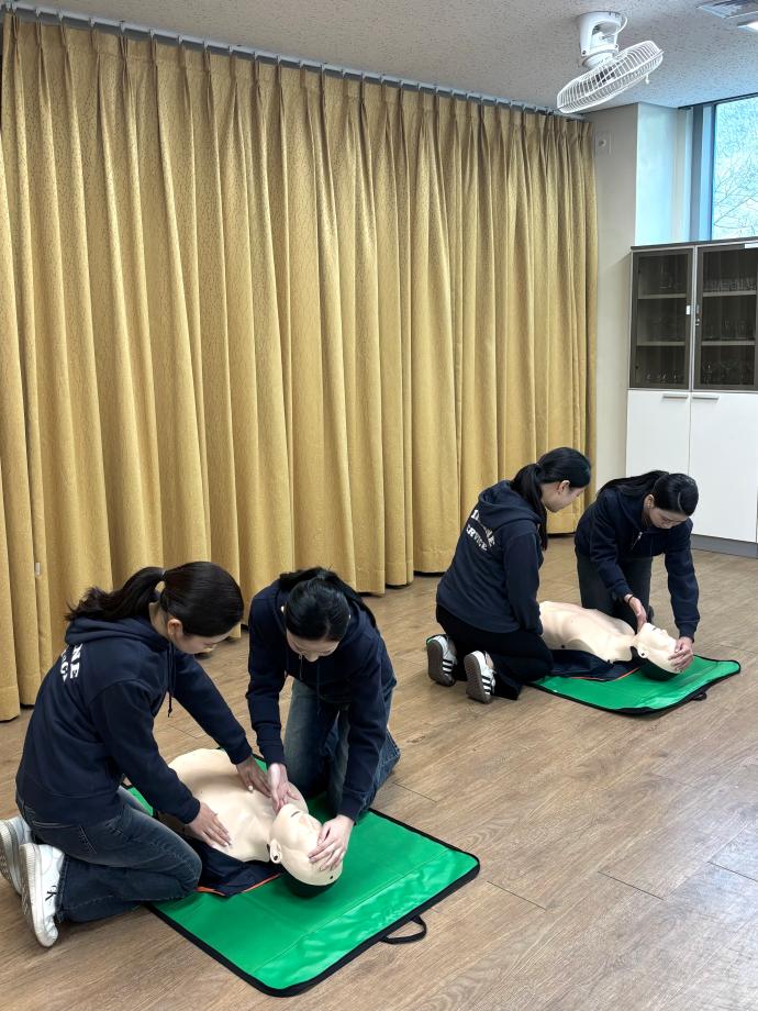 심정지 상황 대응 절차, 인공호흡, 가슴 압박 등 실제 상황을 가정한 훈련을 통해 위기 대응 능력을 체계적으로 강화합니다.