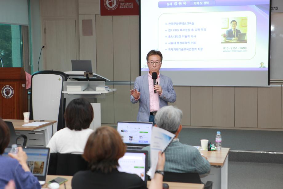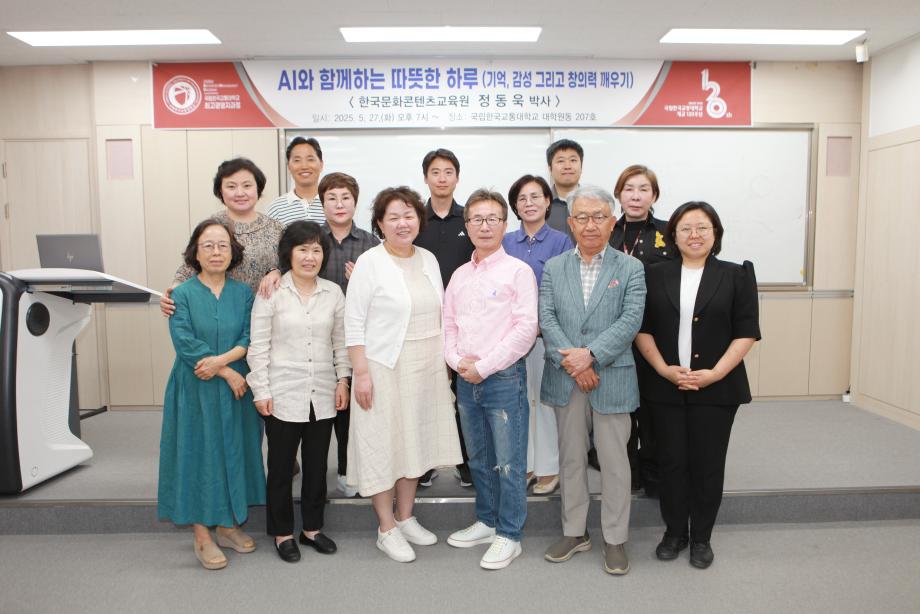 본문 시작 한국문화콘텐츠교육원 정동욱 박사 특강 대학원 행정실 466 2025-05-27 *일시 : 2025.5.27. *강사 : 한국문화콘텐츠교육원 정동욱 박사 특강 *주제 : AI와 함께하는 따뜻한 하루 - 기억, 감성 그리고 창의력 깨우기 목록 이전2023년 제24기 최고경영자과정 개강식 다음푸드닥터 한형선 박사 특강