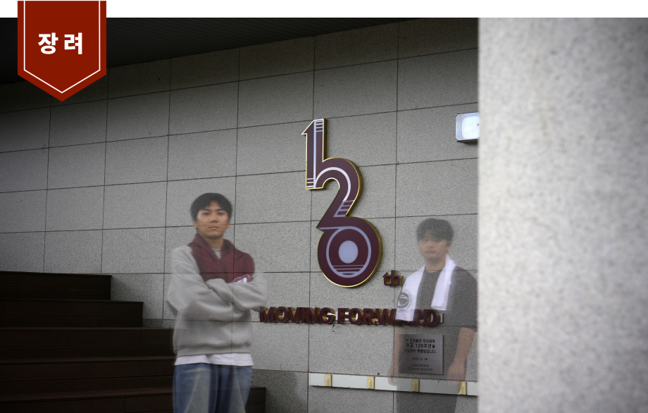 본문 시작 시간의 겹 개교120주년 142 2025-12-15 장노출 촬영기법을 통해 120년의 오랜 순간을 한 프레임에 나누어 담았다. 서로 다른 투명도로 겹쳐진 인물은 과거의 학생들과 현재의 학생들을 상징한다. 흐릿하게 남은 모습은 사라진 시간이자 여전히 이곳에 남아 있는 흔적이다. 그 뒤로 또렷하게 자리한 120주년 엠블럼은 학교의 긴 역사를 기념하며 앞으로의 시간을 향해 나아가겠다는 의미를 함께 전한다. 목록 다음흐르는 시간의 입구 (Entrance of Flowing Time)