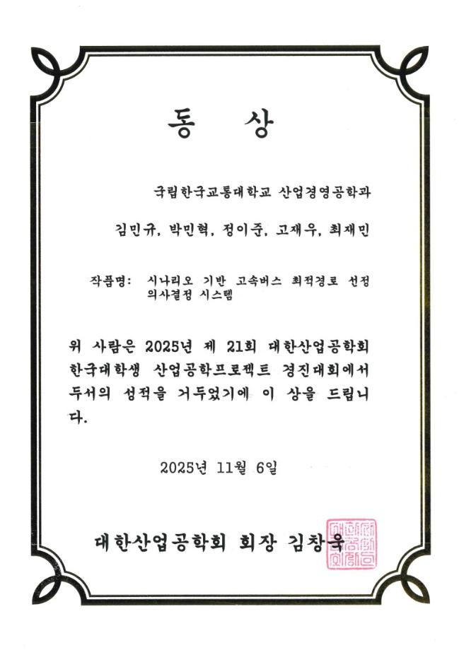 본문 시작 2025년 제21회 대한산업공학회 한국대학생 산업공학프로젝트 경진대회 동상 산업경영공학전공 47 2025-11-07 2025년 제21회 대한산업공학회 한국대학생 산업공학프로젝트 경진대회 동상 목록