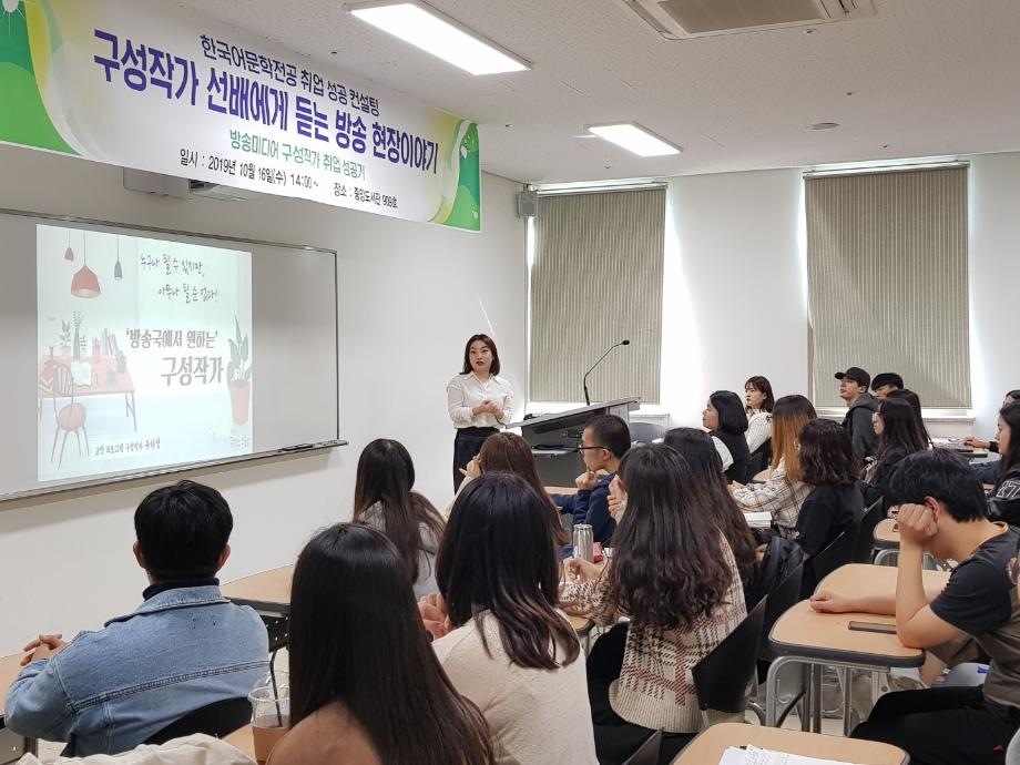 본문 시작 2019년 졸업생특강2 한국어문학전공 1367 2020-05-26 2019 취업성공컨설팅, <구성작가 선배에게 듣는 방송 현장이야기> -2019. 10. 16. 유하영 선배와 함께 목록