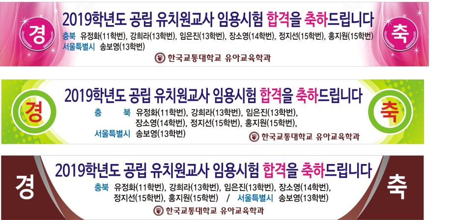 국립 한국교통대학교 유아교육학과(학과장 허정무)는 2019학년도 공립 유치원교사 임용시험에 7명이 최종 합격하였다고 밝혔다.