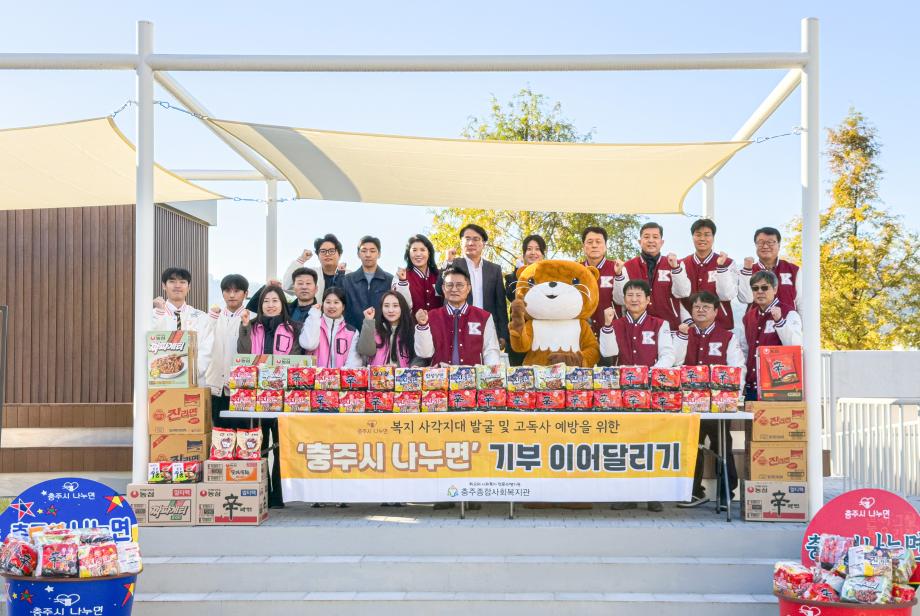 한편, 이번에 기부된 라면은 ‘충주시 나누면’ 공유공간을 통해 충주시민 누구나 자유롭게 이용할 수 있으며, 복지 사각지대 및 고립 위기가구의 따뜻한 식탁을 이어주는 나눔의 매개체로 활용될 예정이다.