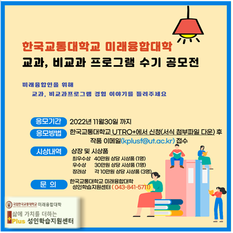 본문 시작 교과, 비교과 수기 공모전(비교과프로그램) 안내 미래융합대학 조회 : 1439 등록일 : 2022-11-09 링크 복사 목록 이전(비교과프로그램) 자기표현 창의인문 베이직캠프 안내 다음창의인문 융합 아카데미(비교과프로그램) 안내