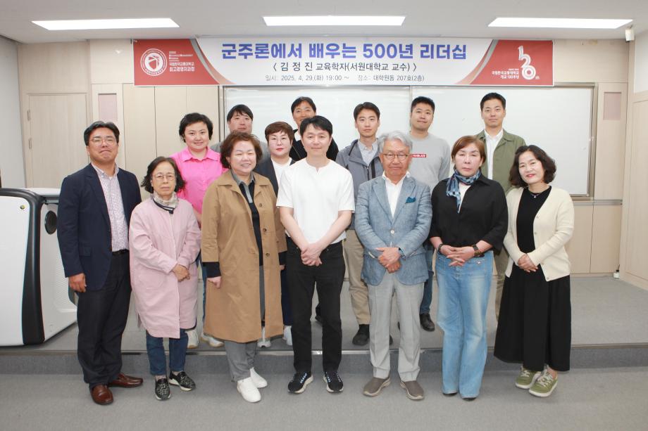본문 시작 서원대학교 김정진 교수 특강 대학원 행정실 613 2025-04-29 *일시 : 2025.4.29. *강사 : 서원대학교 김정진 교수 특강 *주제 : 군주론에서 배우는 500년 리더십 목록 이전2023년 제24기 최고경영자과정 개강식 다음열린사이버대학교 이영우 교수 특강