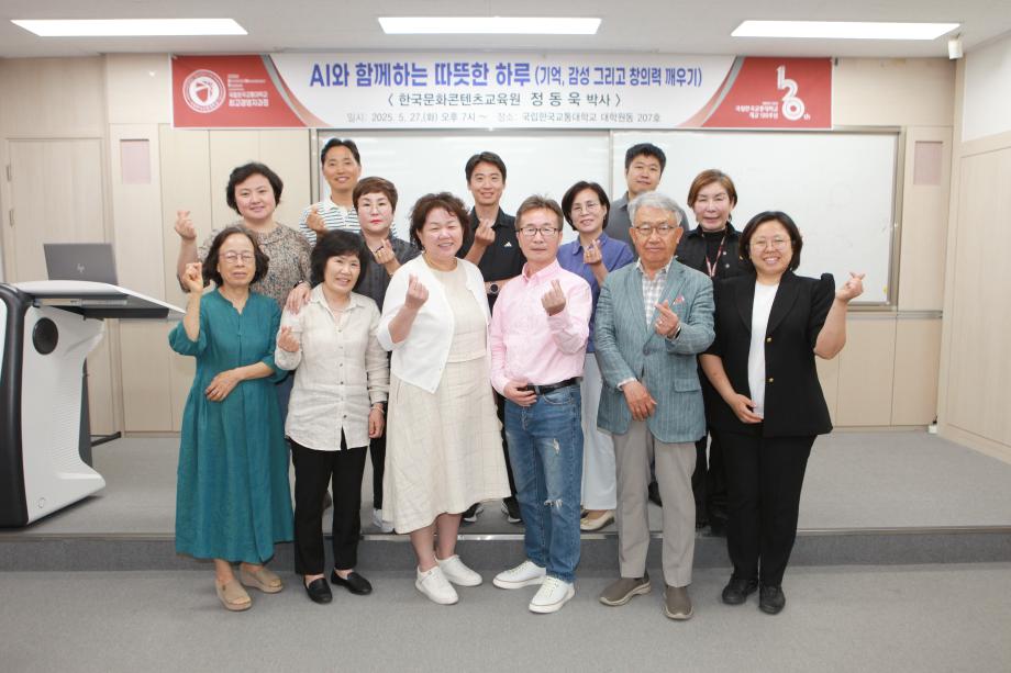 본문 시작 한국문화콘텐츠교육원 정동욱 박사 특강 대학원 행정실 499 2025-05-27 *일시 : 2025.5.27. *강사 : 한국문화콘텐츠교육원 정동욱 박사 특강 *주제 : AI와 함께하는 따뜻한 하루 - 기억, 감성 그리고 창의력 깨우기 목록 이전2023년 제24기 최고경영자과정 개강식 다음푸드닥터 한형선 박사 특강